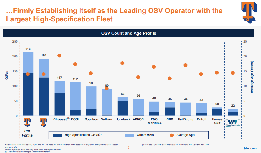 Tidewater did not disclose Wilson Sons’ EBITDA but guided to ~$220mm in revenue. Using Brazilian OSV peer Grupo CBO’s ~48% EBITDA margin as a benchmark and applying a modest discount to ~45% for Wilson Sons’ smaller scale, implies ESTIMATED ~$99mm of EBITDA and a trailing acquisition multiple of ~7.7x. While the deal carries no expected cost synergies, Tidewater gains more than 22 Brazilian-built OSVs and also gains option value to market its international fleet within Brazil, where local laws favor domestic service providers which it now qualifies for with Wilson Sons.